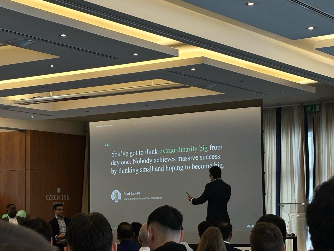 When I stepped onto the stage, I was nervous. I had two hands, but three things to hold: my phone (for speaker notes), the mic, and the clicker. So, I requested a colleague — who had just presented for North America — to help me click through the slides. He happily obliged.